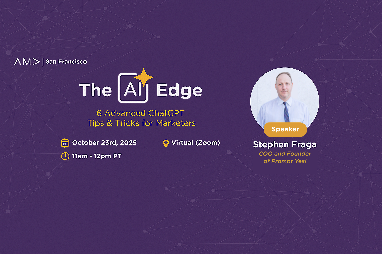 AI is creating opportunities for marketers to succeed on the job in new ways. Recently, the AMA San Francisco Chapter partnered with Steven Fraga of Prompt Yes! to host “The AI Edge,” a hands-on workshop that showed how marketers can use AI to effectively to drive creative and strategic impact.... read more →