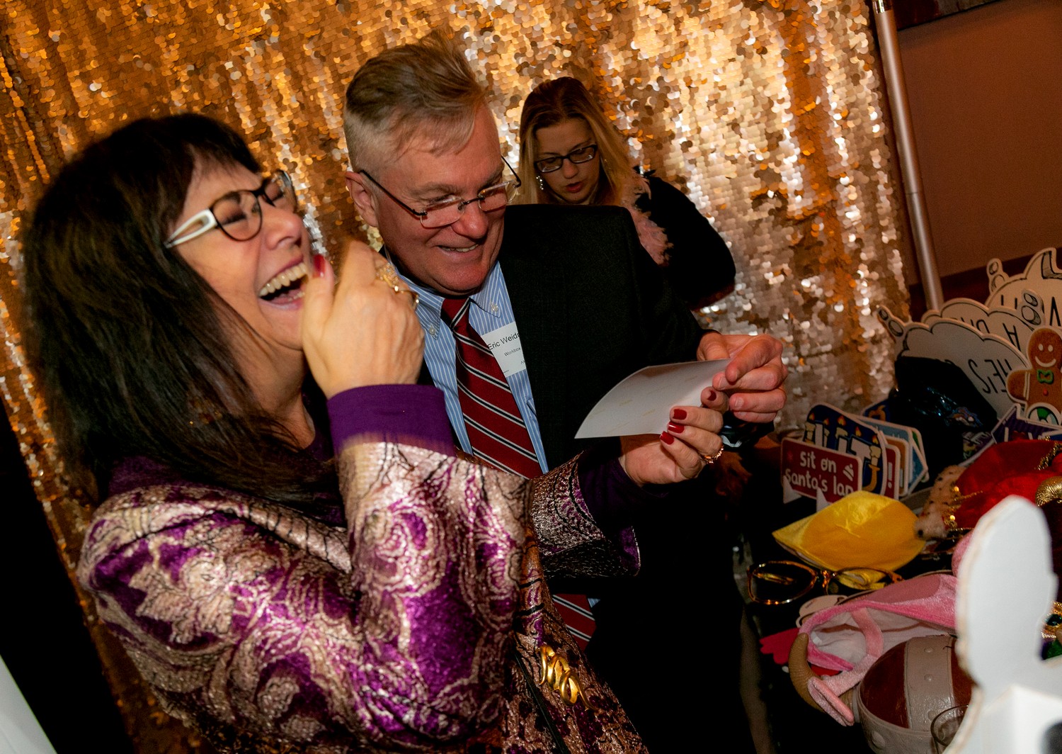The Jingle, Mix & Mingle party had a bit of everything: Great cocktails to select from, a delectable selection of Dim Sum appetizers, a photo booth with all sorts of comical props, a silent auction benefiting the Tenderloin After-School Program, a toy drive for the San Francisco Firefighters Toy Program, and many interesting people to interact with. And as a special holiday treat, Tony Wessling was giving away signed copies of his book, “The Powers” to all of our guests.