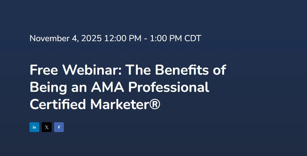 November 4 @ 10:00 am - 11:00 am PST Free Webinar: The Benefits of Being an AMA Professional Certified Marketer®