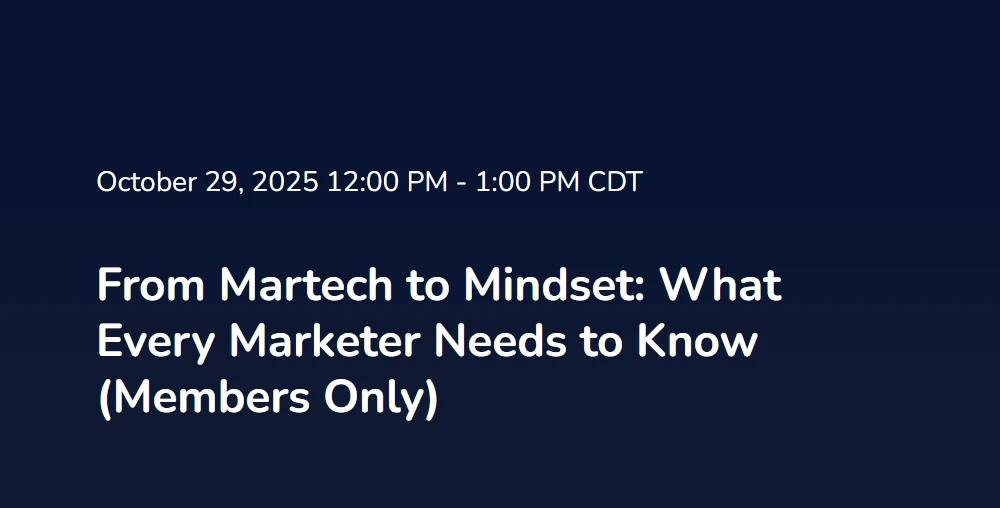 October 29 @ 10:00 am - 11:00 am PDT From Martech to Mindset: What Every Marketer Needs to Know (Members Only)